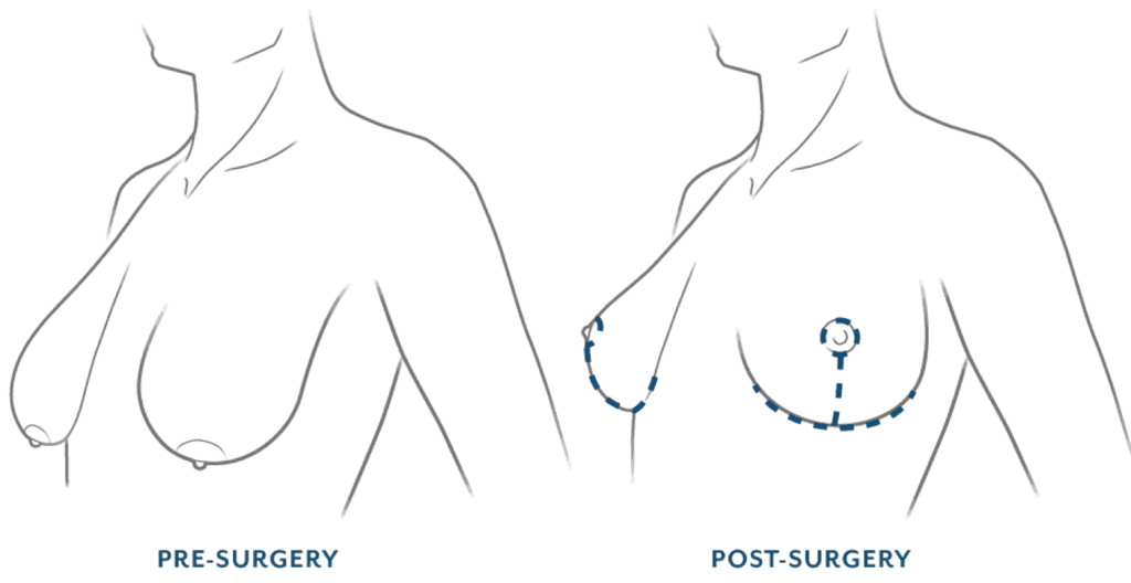 L’intervention dure entre 2 et 3 heures selon la complexité. Sous anesthésie générale, le chirurgien réalise les incisions prévues, repositionne le tissu glandulaire, retire l’excédent cutané et réajuste l’aréole. Les incisions sont fermées avec des sutures résorbables de haute qualité pour minimiser les cicatrices visibles.